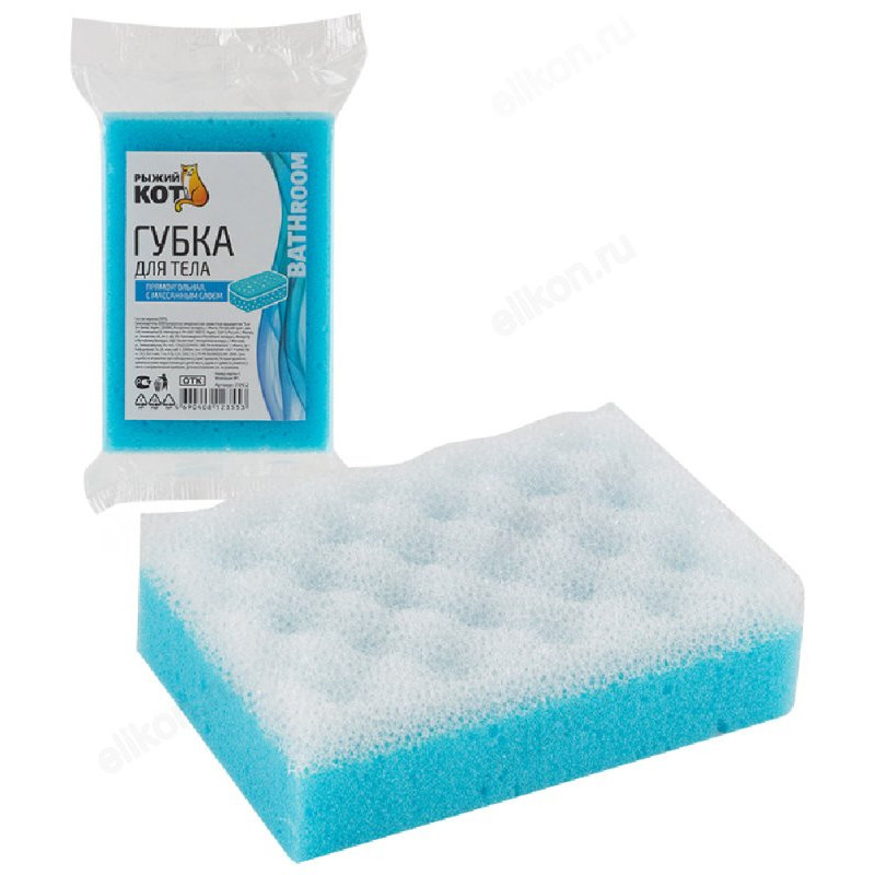 Губка для тела Рыжий кот, пролон, 13х9х4 см