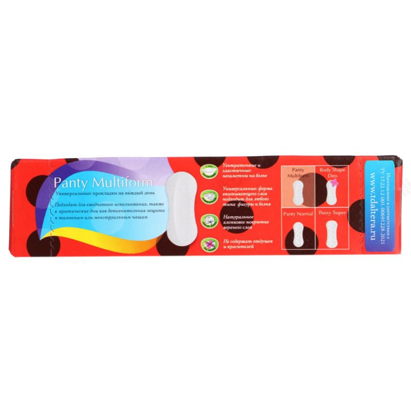 Ультратонкие (толщина 1 мм) прокладки на каждый день. Поверхность - нетканый материал, напоминающий натуральный хлопок. Легко принимает форму тела, благодаря нежной и гибкой структуре. Форма впитывающего слоя - "миндаль" гарантирует комфортное использование на всех типах белья.