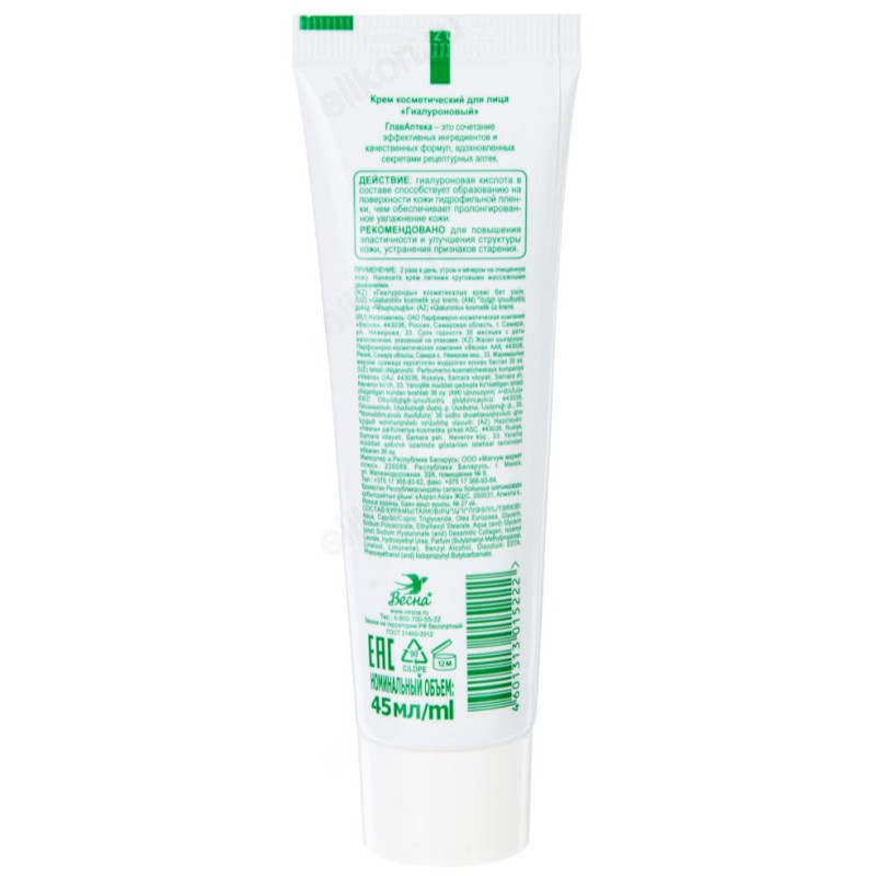 Крем для лица Весна Главаптека Гиалуроновый 45г 977-165