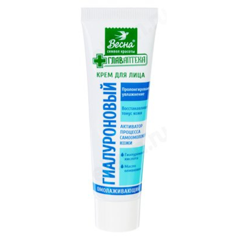 Крем для лица ВЕСНА «Главаптека» Гиалуроновый 45 г оказывает пролонгированный увлажняющий эффект, восстанавливает тонус кожи, сохраняя ее молодость и свежесть. Гиалуроновая кислота и оливковое масло активируют процесс самоомоложения кожи, работая на клеточном уровне и снижая признаки старения. Результат: эластичная увлажненная и бархатистая кожа. Крем имеет комфортную текстуру, не оставляет липкости после впитывания.