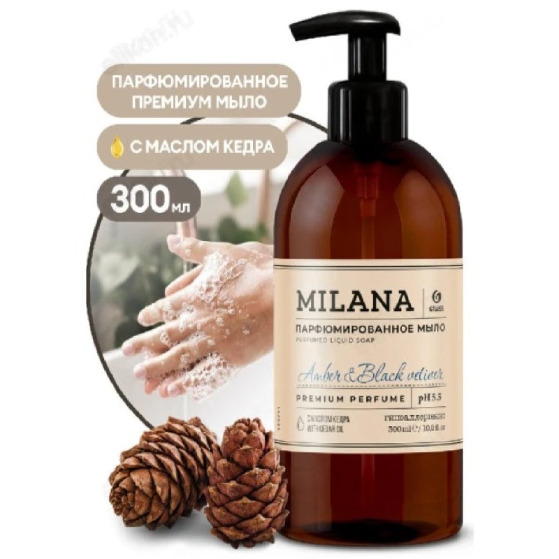 Жидкое крем-мыло GRASS MILANA Amber&Black Vetive 300мл 125711
