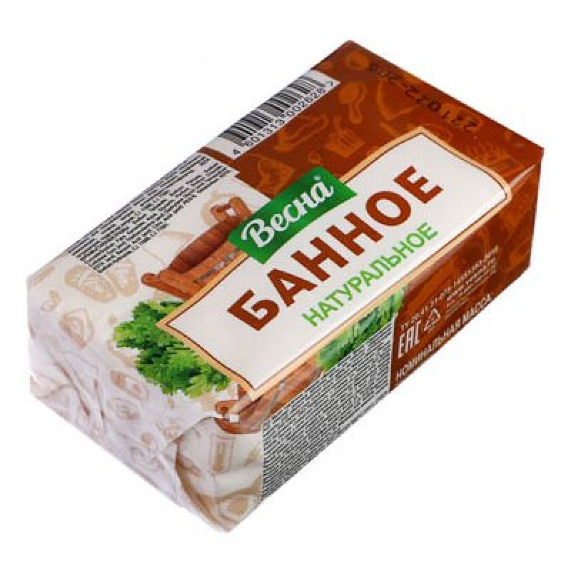 Мыло " Банное" Весна произведено из натуральных природных ингредиентов. Мыло очень хорошо мылится, держит форму, быстро подсыхает, после мытья рук. Мыло белого цвета, без красителей.Запах очень легкий, приятный. Храните в сухом, чистом месте. Мыло имеет ряд преимуществ, которые позволяют комфортно использовать его в быту и на производстве. Регулярное применение мыла Весна исключит возможность размножения болезнетворных бактерий, препятствует появлению шелушения, увлажняет , придает мягкость, эластичность, устраняет жирный блеск.