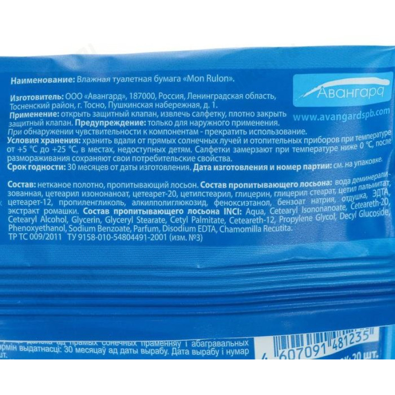 Бумага туалетная Mon Rulon, 20 шт, влажная