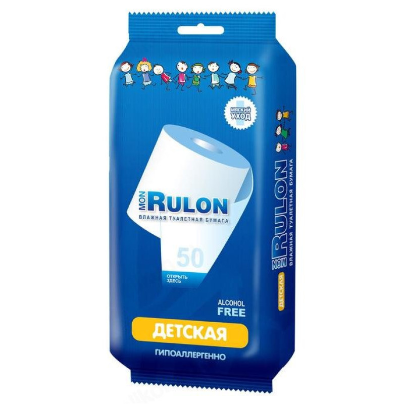 Бумага туалетная влажная MON RULON детская 50шт