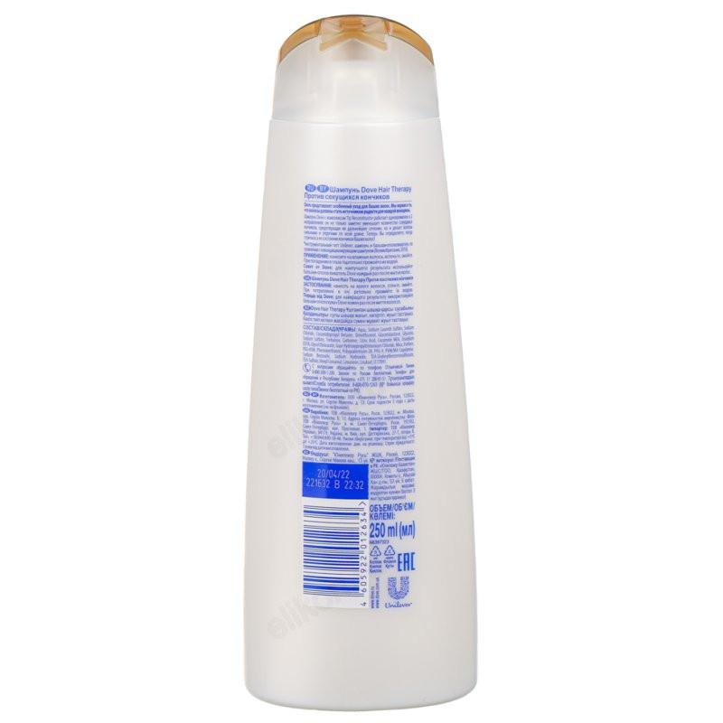 Dove Hair Therapy шампунь против секущихся кончиков, питание, увлажнение и восстановление.Шампунь с технологией Target Repair работает сразу в 3-х направлениях. Технология восстановления мгновенно определяет и восстанавливает любые повреждения. Молекулы Fibre Repair Actives проникают вглубь поврежденной структуры волоса и воссоздают ее. Прогрессивное питание делает волосы более устойчивыми к будущим повреждениям. Результат ? восстановление до 98% повреждений.Способ применения: нанесите на влажные волосы, вспеньте массажными движениями, смойте. При попадании в глаза тщательно промойте их водой. Подходит для ежедневного применения. Для наилучшего результата используйте бальзам-ополаскиватель Dove каждый раз после мытья волос.
