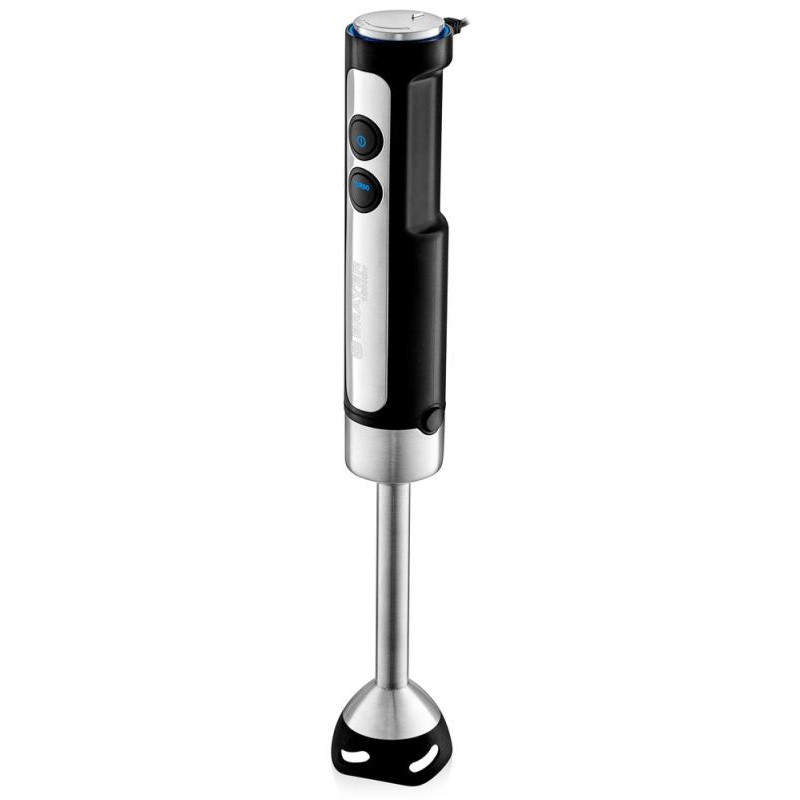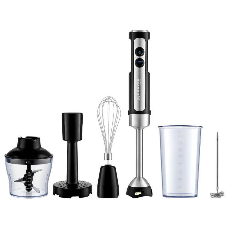 1500Вт, лезвия титан, погружная часть нерж.сталь, турборежим, плавная регулир. скорости, венчик, стакан 800мл, измельчитель 600мл, насадка д/приготовления пюре , капучинатор