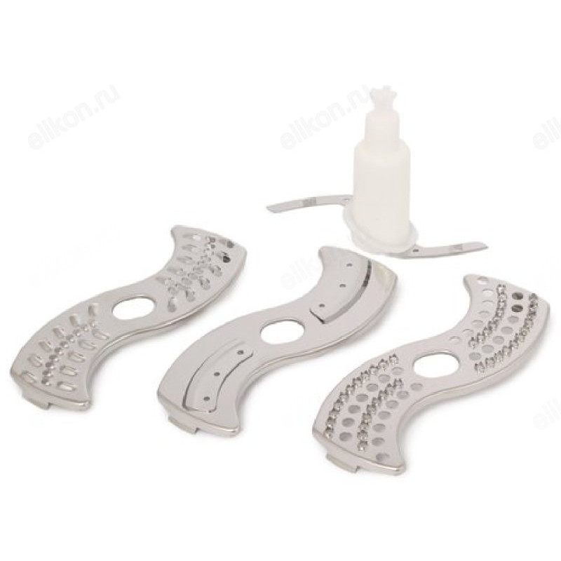 В комплект входит мини-процессор с двумя насадками-терками, шинковкой и измельчителем.
