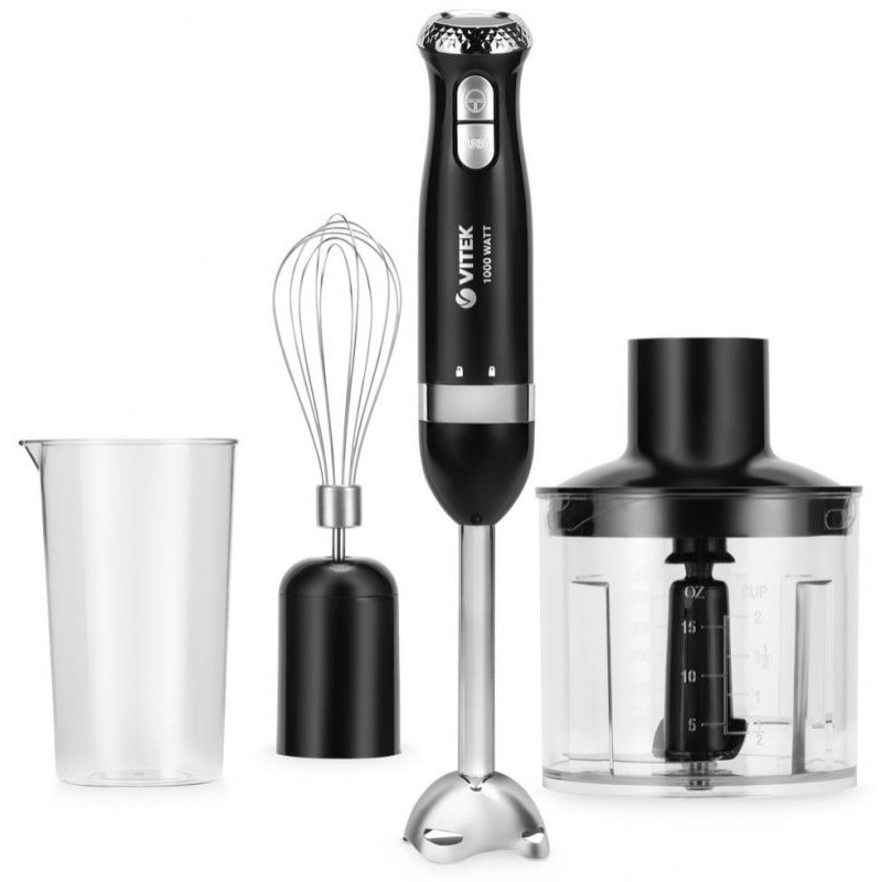 1000Вт, нога-металл, 2 скорости, измельчитель 500мл, стакан700мл , насадка для взбивания