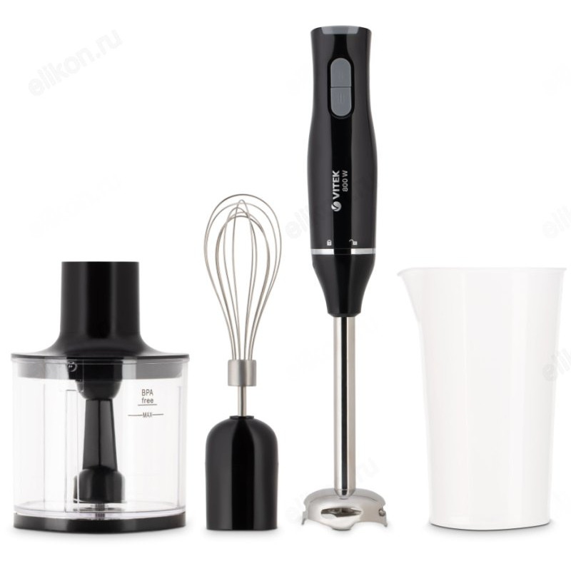 Погружной блендер VITEK VT-3424 обладает двумя скоростными режимами (максимальная мощность 800 Вт).