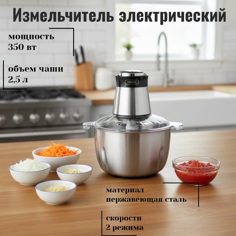 Удобная широкая кнопка управления режимами позволяет самостоятельно регулировать размер рубленых кусочков. Благодаря съемным ножам вы легко сможете очистить чашу от остатков пищи.