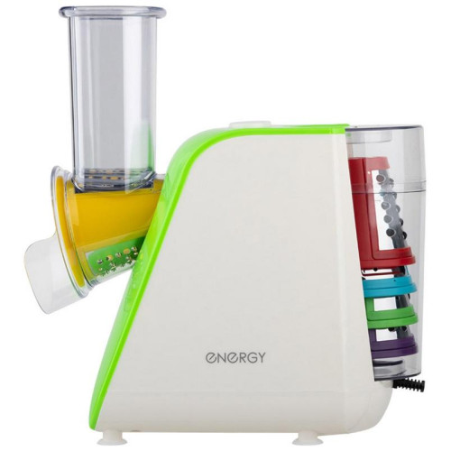 250Вт, 1 скорость, 5 насадок для нарезки и шинковки, толкатель, отсек для хранения