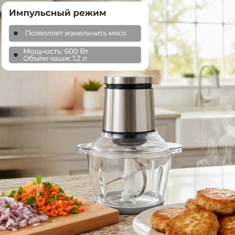 Компактный кухонный помощник с удобной и продуманной конструкцией. Легко справляться с твердыми овощами, фруктами, орехами и мясом. Двойные ножи с нержавеющими лезвиями специальной конструкции быстро и равномерно измельчают и смешивают продукты. Незаменим, если нужно что-нибудь быстро взбить, смешать или перемолоть.
