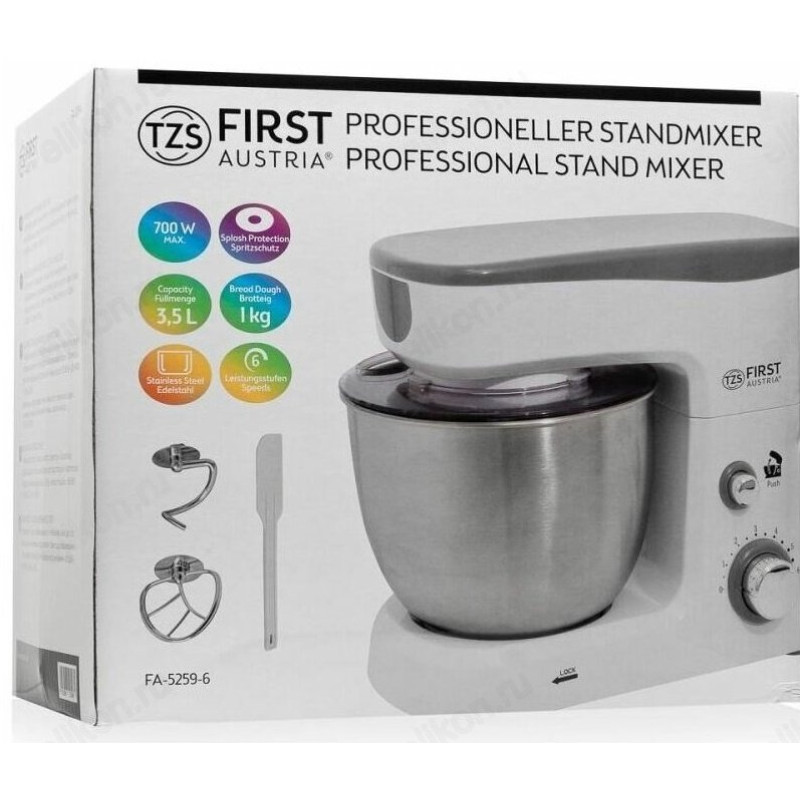 First FA-5259-6 – стационарный миксер для приготовления теста и решения других кулинарных задач. Чаша, объём которой составляет 3, 5 л, позволяет создавать большие порции.