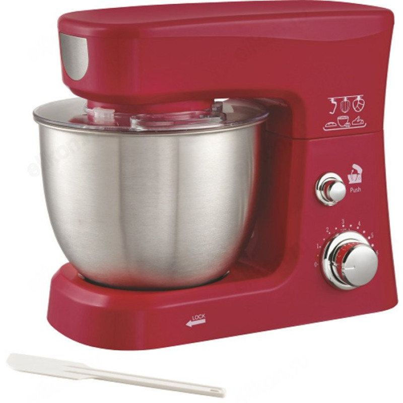 Миксер настольный с планетарным вращением насадок, с прозрачной крышкой и отвертсием для добавления продуктов в процессе, 3 насадки (объемный венчик, плоский венчик и крюк), лопаточка в комплекте.