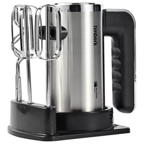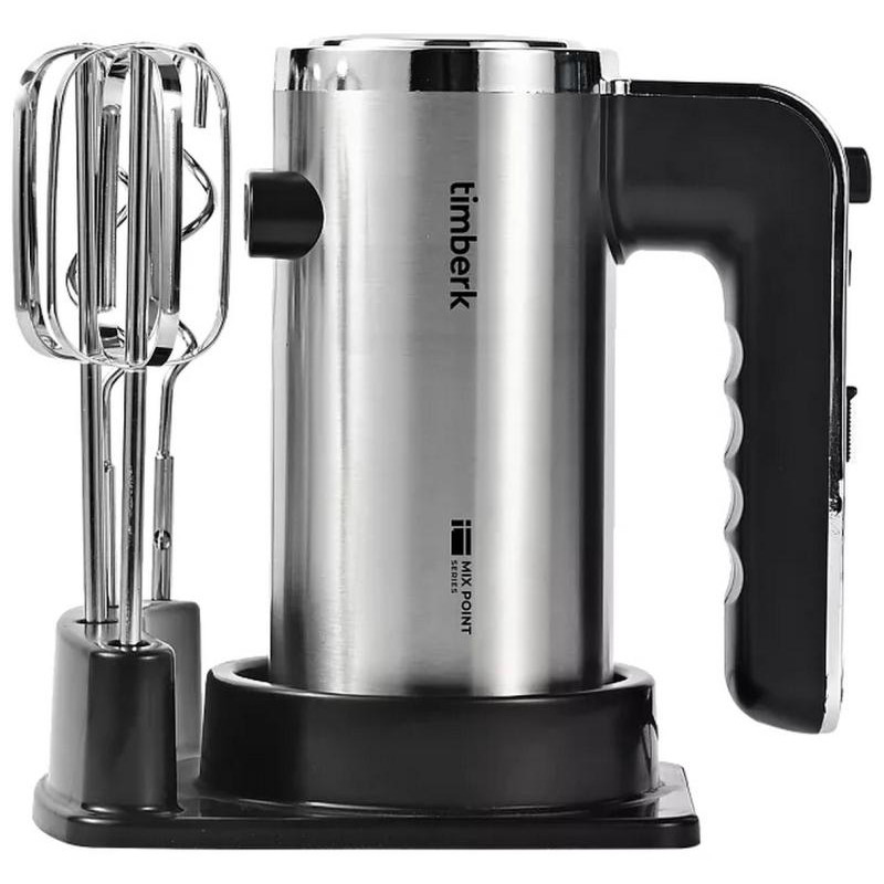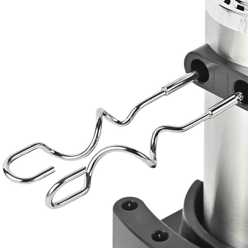 500Вт, 5 скоростных режимов, венчики для взбивания, насадки для замешивания теста, режим turbo, подставка для хранения насадок