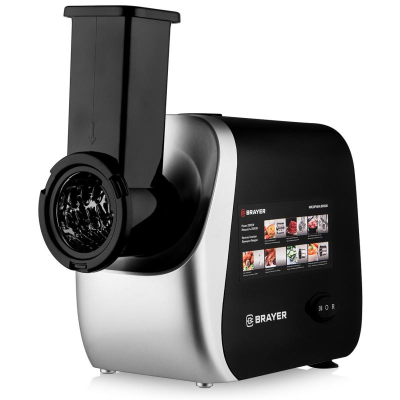 2000Вт, реверс, насадки кеббе, колбасы, д/овощей (терка, резка, шинковка), драники, 3 диска, отсек д/хранения дисков