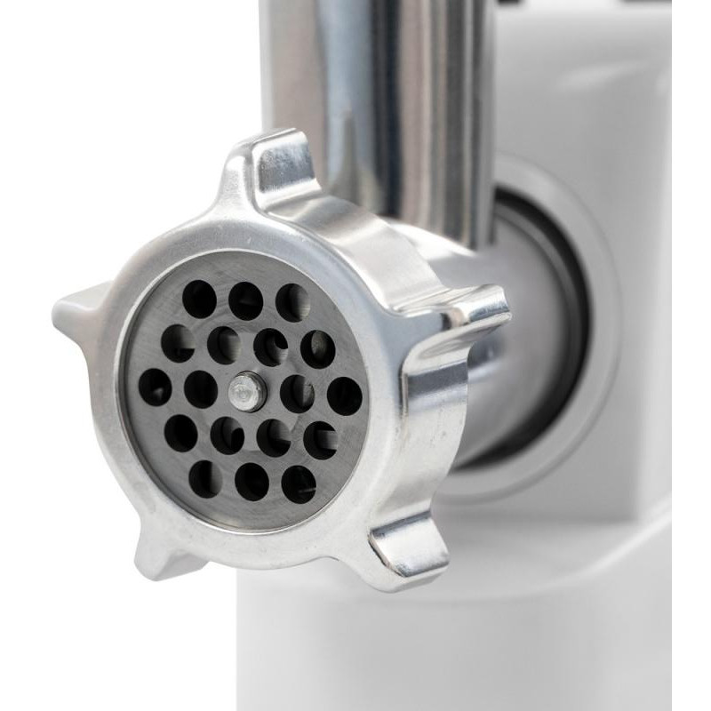 600Вт, литой нож из нерж.стали, реверс, 2 диска, насадка д/приготовления сосисок и кеббе, защита двигателя от перегрева