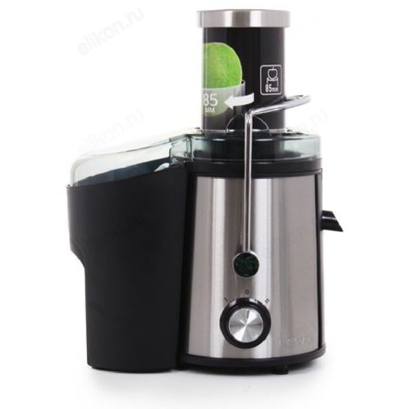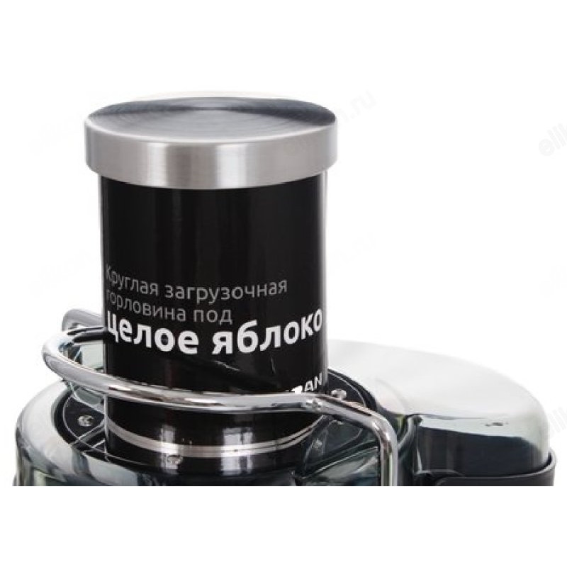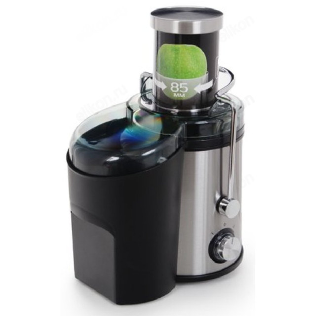 С мощностью 800 Вт прибор легко справляется даже с твердыми фруктами и овощами, а большая горловина диаметром 85 мм позволяет загружать их не разрезая.