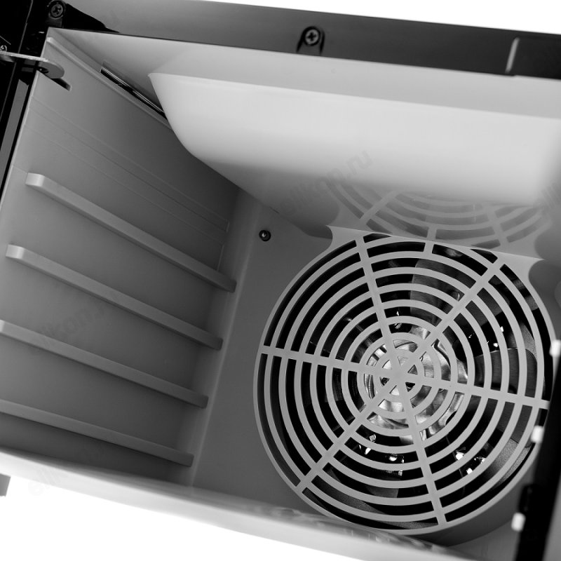 В сушилке установлен мощный нагревательный элемент и вентилятор обеспечивающий равномерное распределение нагретого воздуха по всему объему камеры.