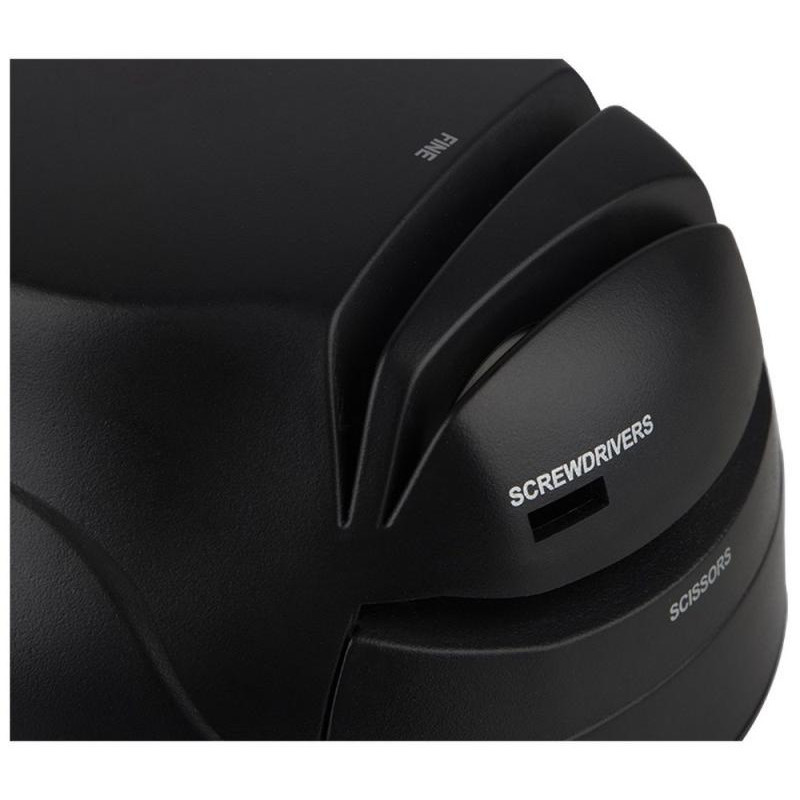 60Вт, быстрый и безопасный способ наточить ножи/отвёртки/ножницы, автоматически удерживает лезвие под нужным углом, корундовый точильный диск позволяет легко добиться идеальной остроты менее чем за 1мин, высокая скорость вращения, заточка и хонингование