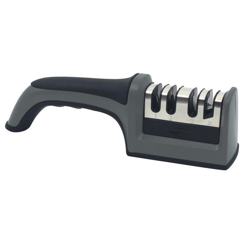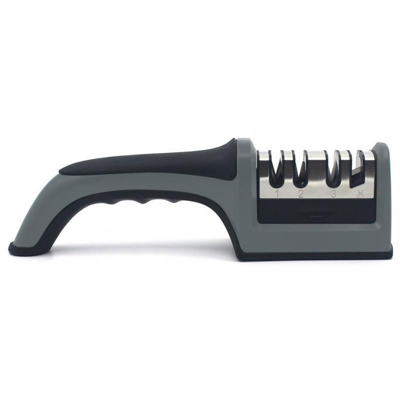 22.2х5.3х6.4см, нерж.сталь/пластик/силикон, 3 шлифовальных модуля для ножей и модуль для заточки ножниц, угол заточки 20 градусов ,