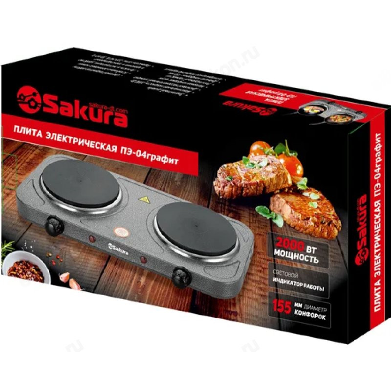Плита SAKURA ПЭ-04 2000Вт (2 чуг.конф) графит