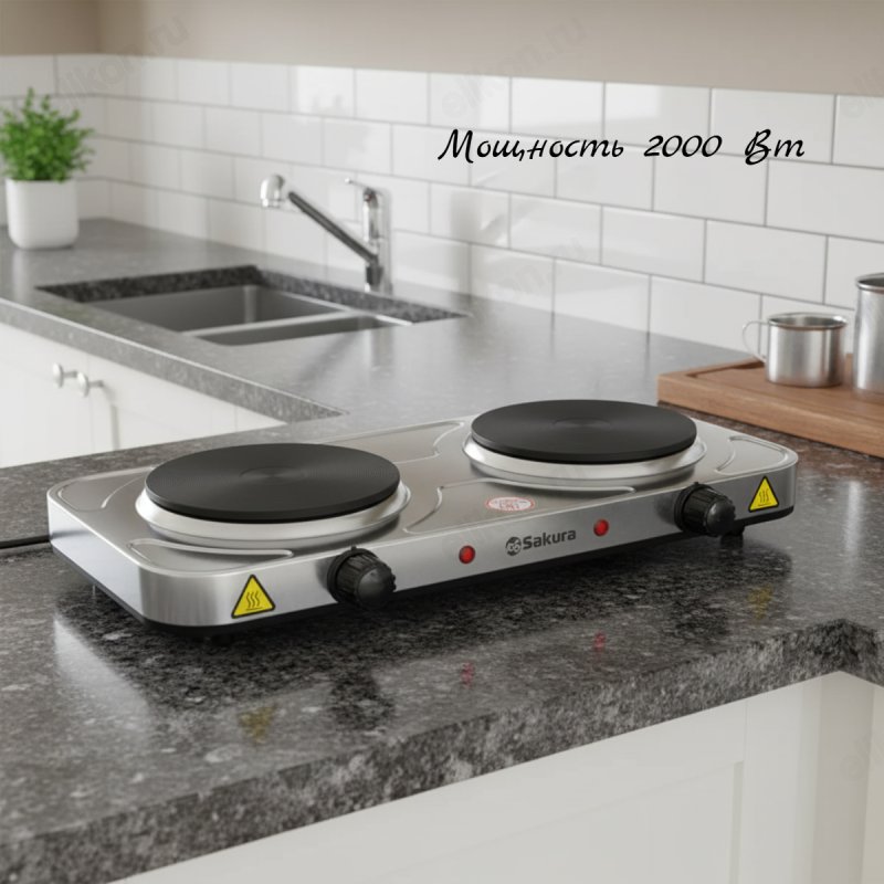 Плита SAKURA ПЭ-04Н 2000Вт (2 чуг.конф) нерж.сталь