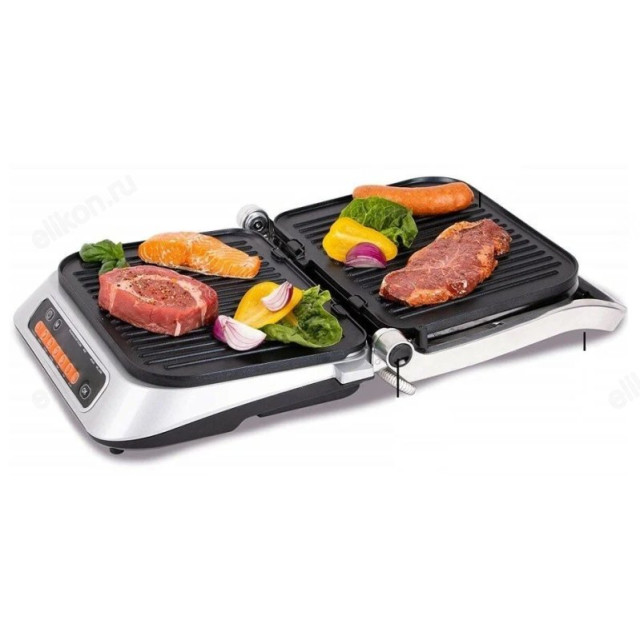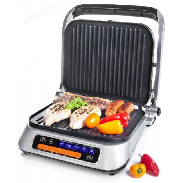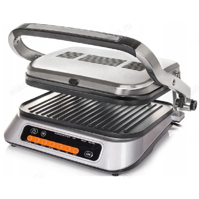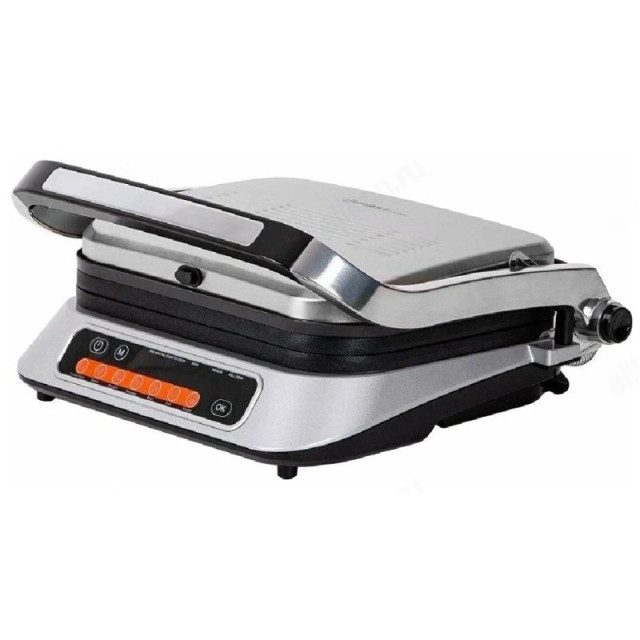 2100Вт, 7 программ, съемные пластины 310х250мм, открытие на 180°, индикаторы работы, нагрева.