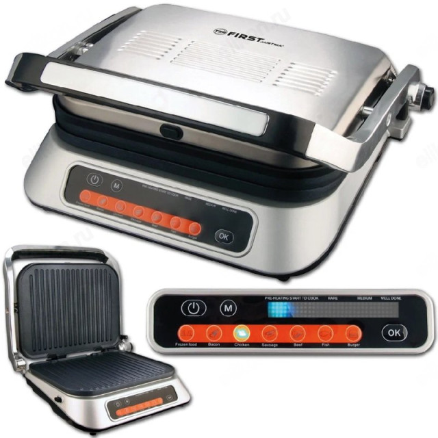 Гриль FIRST FA-5344-3 способен в автоматическом режиме определить толщину продуктов и предложить пользователю наиболее подходящий режим приготовления.
