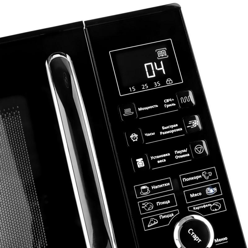 900Вт, 23л, цифровое управление, LED-дисплей, 6 уровней мощности, 8 режимов приготовления, режим разморозки, таймер 95мин, d245мм блюдо