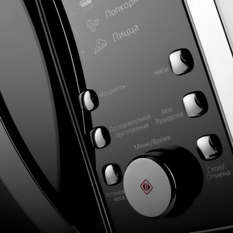 900Вт, 25л, цифровое управление, LED-дисплей, 6 уровней мощности, 7 режимов приготовления, режим разморозки, электронные часы, таймер 95мин, d270мм блюдо
