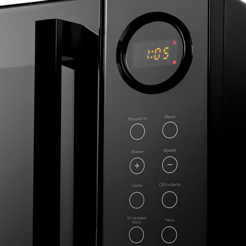 900Вт, 23л, цифровое управление, LED-дисплей, 6 уровней мощности, 9 режимов приготовления, функция гриля, быстрая разморозка, программирование последовательного приготовления, электронные часы, блокировка кнопок для безопасности, электронные часы, таймер 95мин, d270мм блюдо