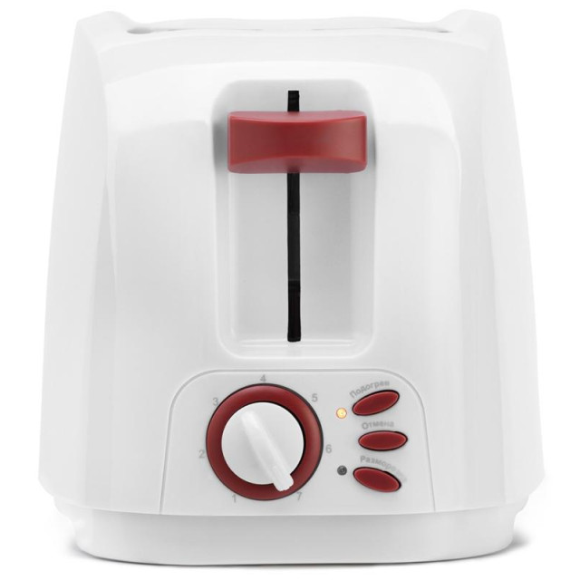 800Вт, 2 тоста, корпус из термостойкого пластика, 7 степеней обжарки, функция разморозки, функция подогрева, кнопка отмены