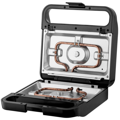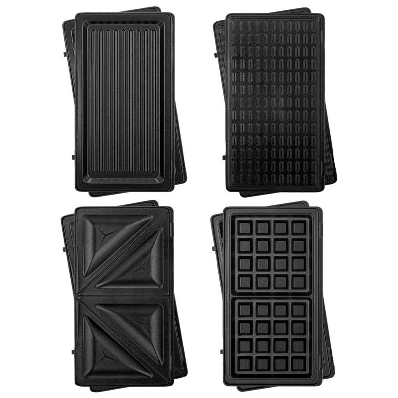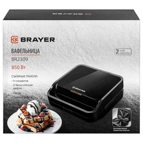 850Вт, сэндвичи/вафли/гриль/тонкие вафли, съемные пластины 22.5х12.6см, антипригарное покрытие, индикатор готовности и работы, фиксация ручек