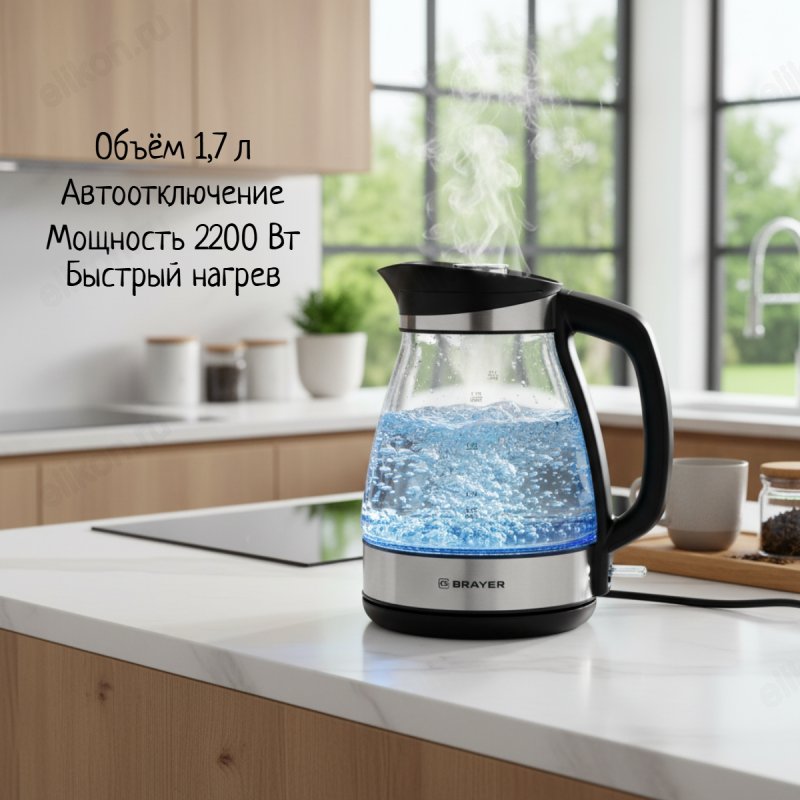 Чайник стеклянный BRAYER BR-1048 1,7л