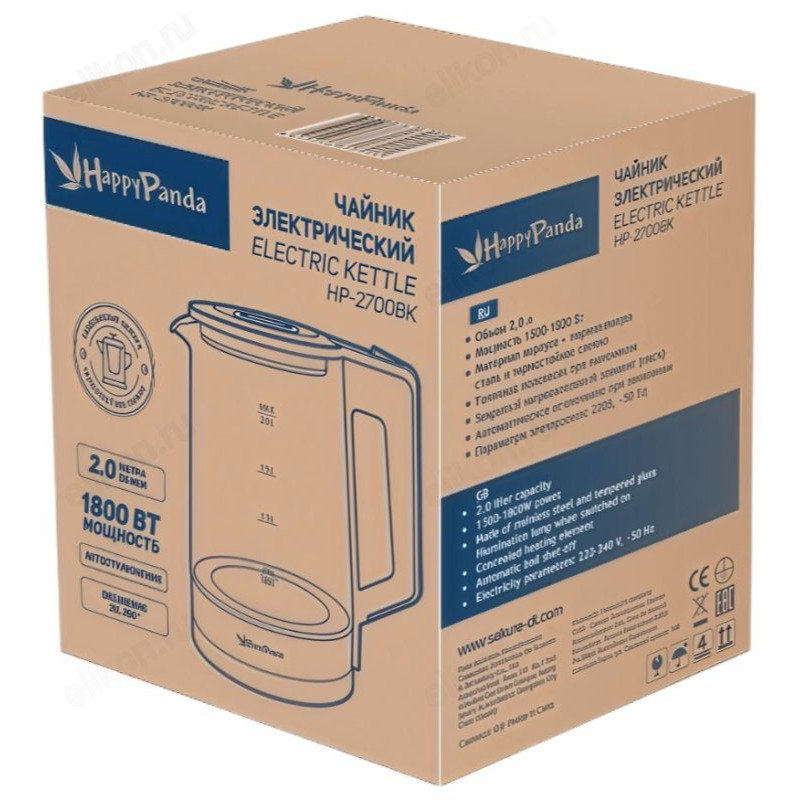 Чайник стеклянный Happy Panda HP-2700BK 2,0л подсв