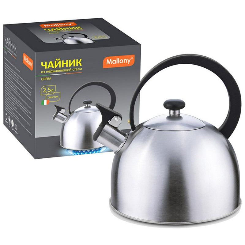 Чайник из нерж стали 2.5л со свистком 'Opera' (матовый) MALLONY 005179