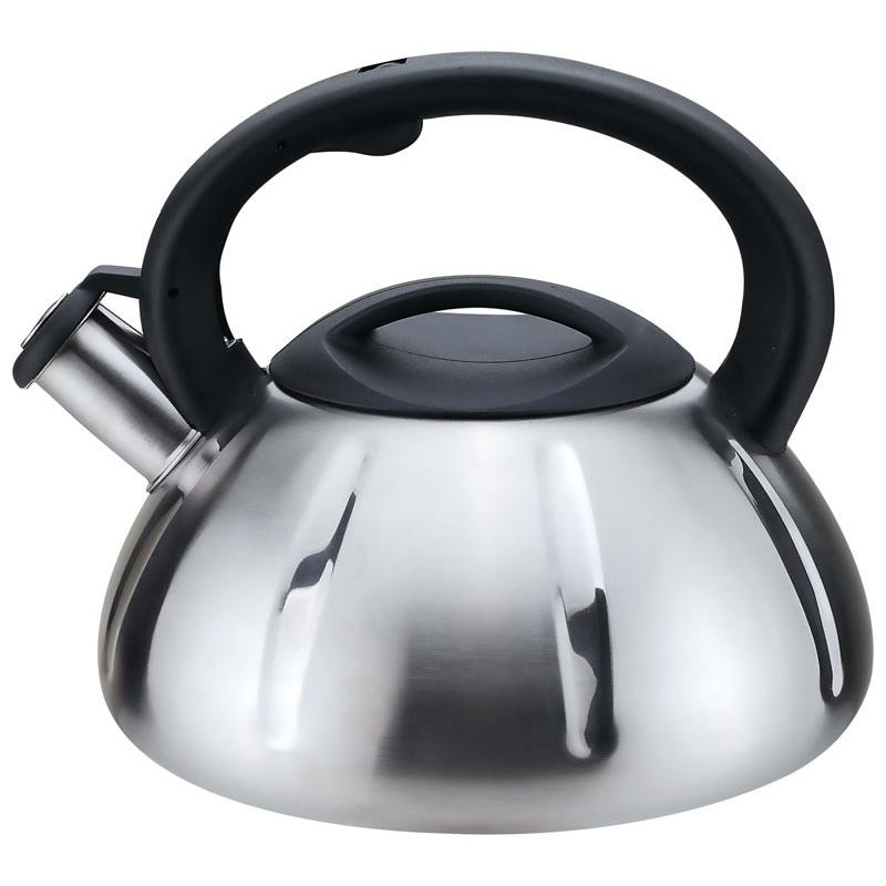 3л, нерж.сталь/пластик, однослойное дно, цельнометаллический, матовый, со свистком, подходит для всех типов плит