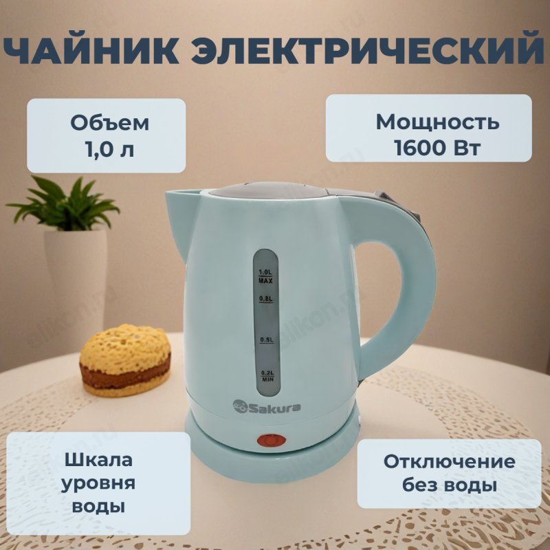Чайник электрический Sakura SA-2342BLS, голубой/серый, 1 л
