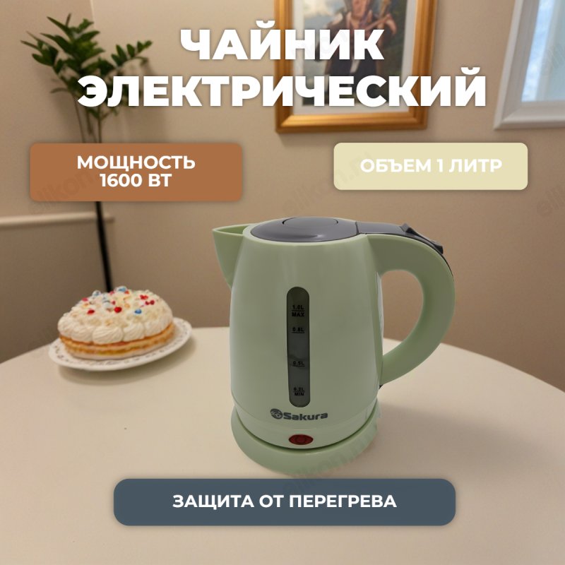 Чайник SAKURA SA-2342GRS 1л зелен/сер