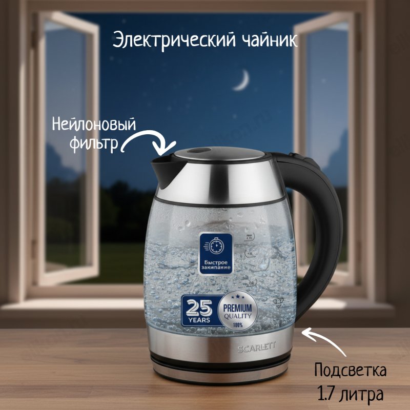 Чайник стеклянный SCARLETT SC-EK27G94 1,7л