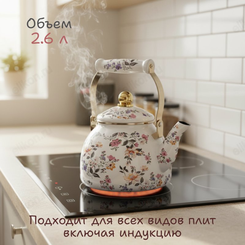 Чайник эмаль ZEIDAN Z-4532 2,6 л Wildflowers