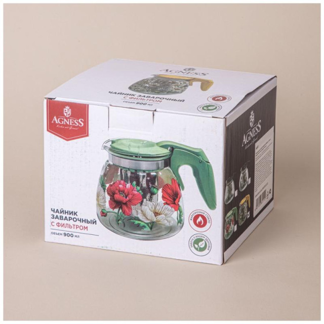 Чайник заварочный Agness с фильтром 'Васильки' 900мл ARTI-M 885-111