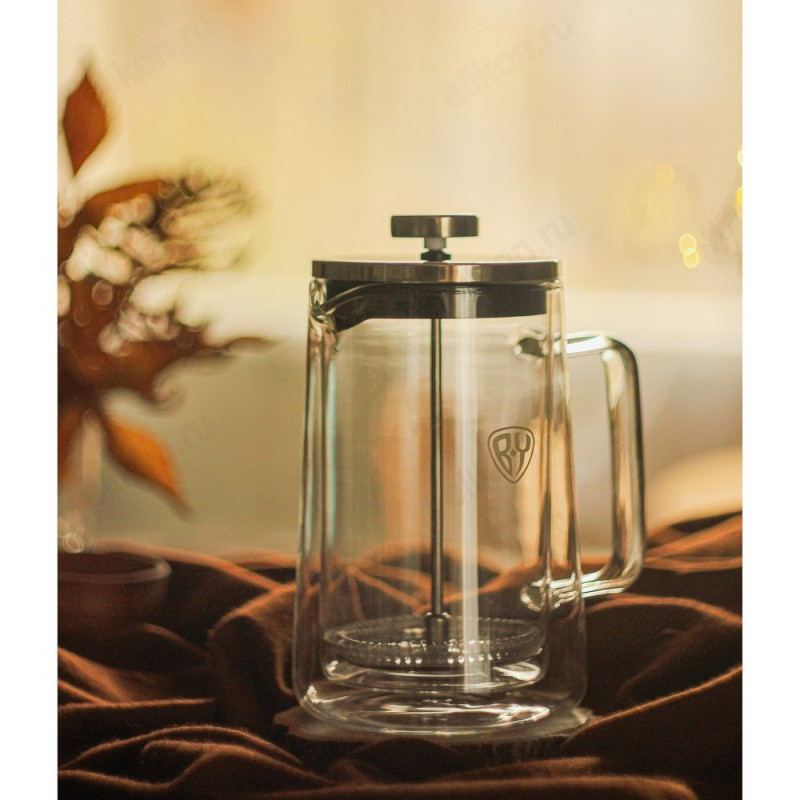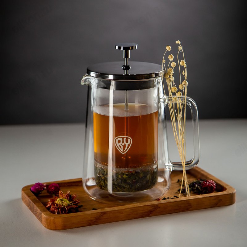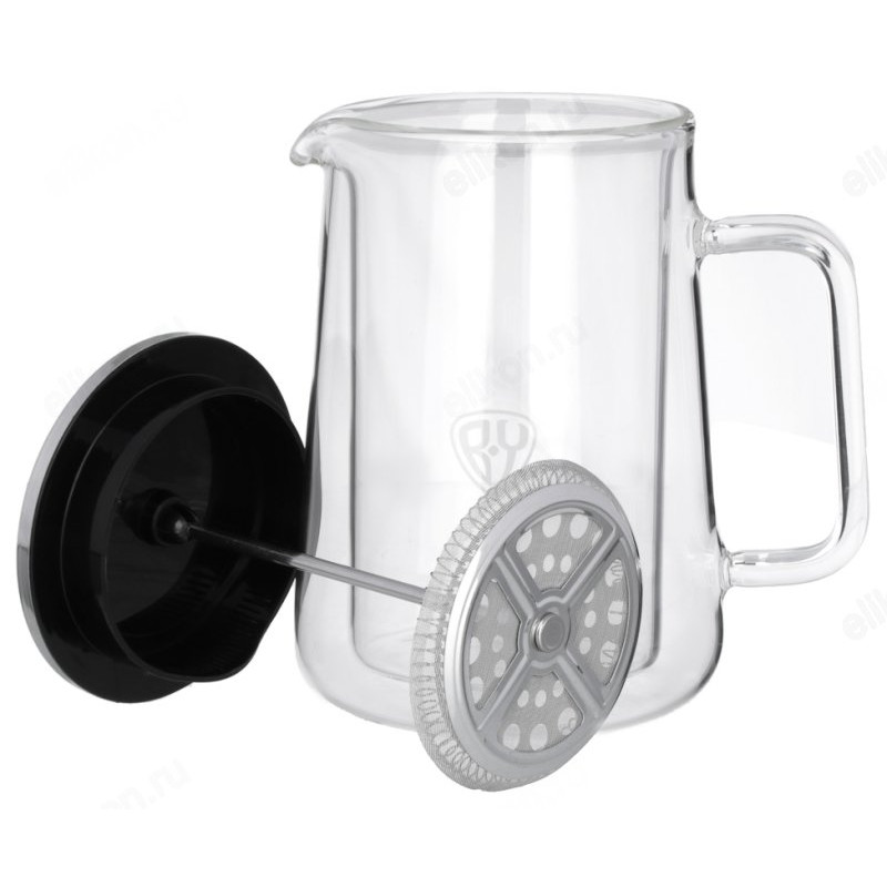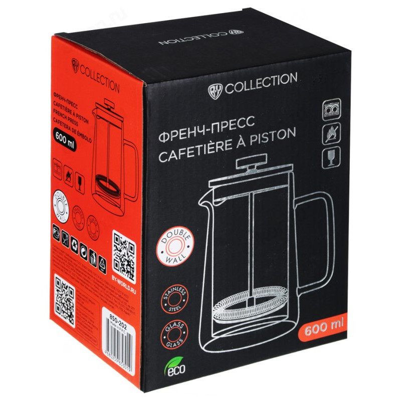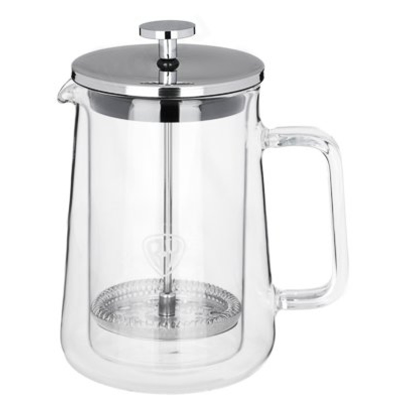Посуда с двойными стенками сейчас на пике моды. BY Collection предлагает Френч-пресс из жаропрочного стекла с двойными стенками, которые позволяют поддерживать температуру напитка гораздо дольше, а также предотвращают ожоги рук. Втулка из нержавеющей стали долговечная и надежная, не искажает вкус напитка. Френч-пресс имеет стильный и строгий дизайн.
