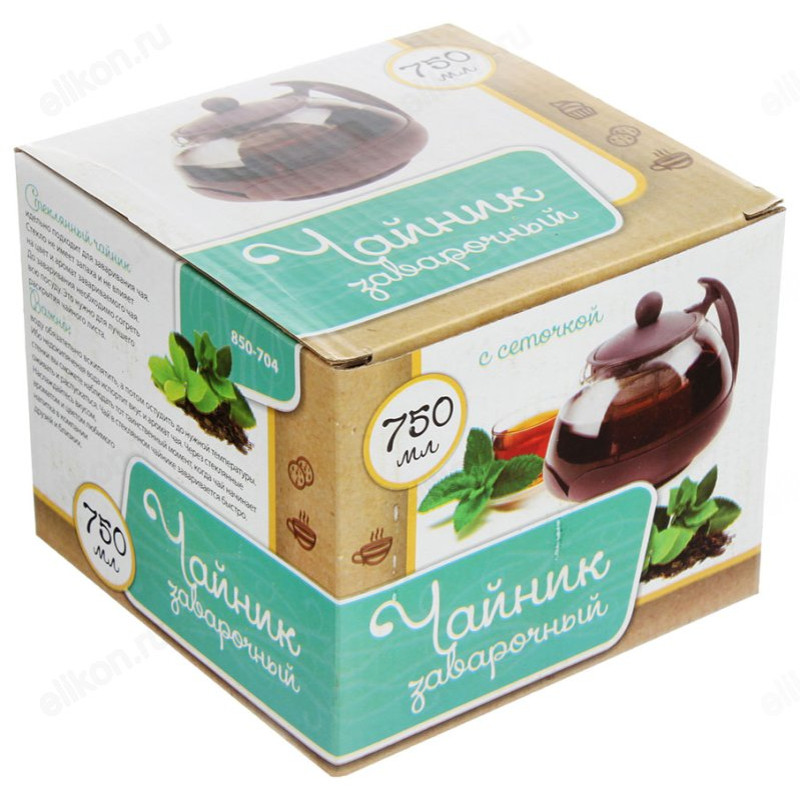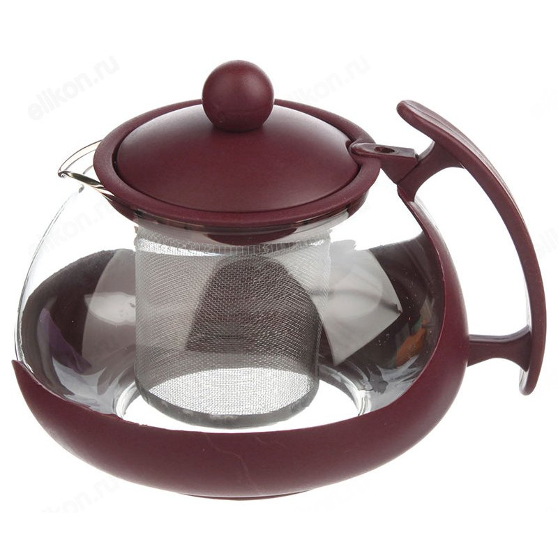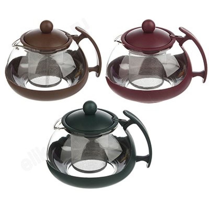 Заварочный чайник объемом 750 мл из стекла в пластиковом корпусе, с ситечком из нержавеющей стали, подходит для заваривания чая и трав.