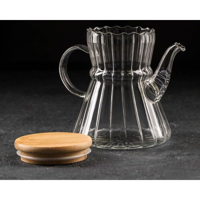 В носике установлено маленькое ситечко, предотвращающее попадание крупных чаинок в напиток. Крышка чайника выполнена из бамбука. Плотность прилегания крышки обеспечивается силиконовым уплотнением, которое предотвращает опрокидывание крышки. Это отличный выбор для тех, кто подбирает в свою кухню стильную технику, посуду и приборы. А также кувшин является прекрасным и полезным подарком для ценителей качества и эстетики.