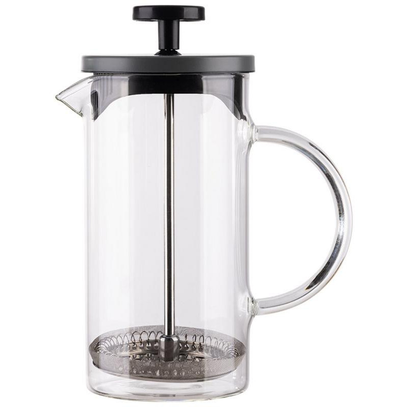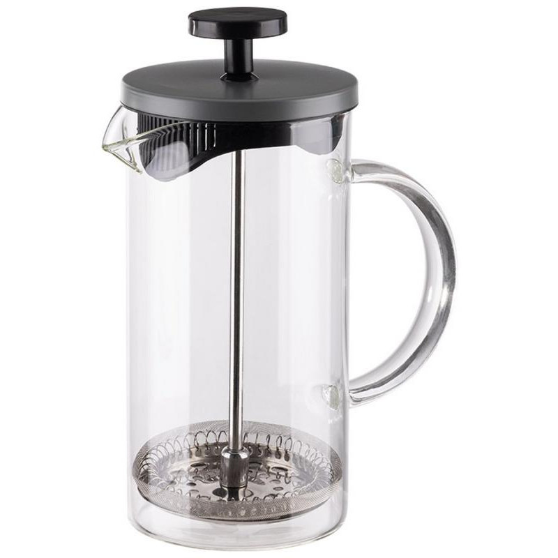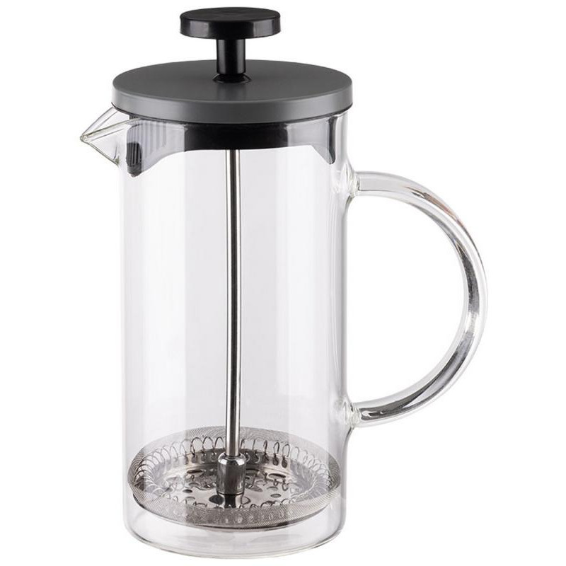 Френч-пресс Grigio, объём 350мл, со стеклянной ручкой/с окрашенной стальной крышкой, жаропрочное стекло, фильтр из нерж стали, пластмасса, нерж сталь 201. Коэффициент линейного расширения стекла: 3.3. Темп режим: - 20С до +150 С.