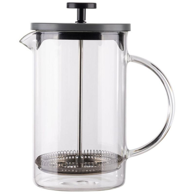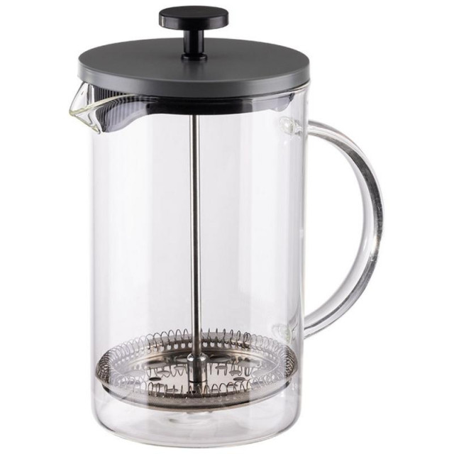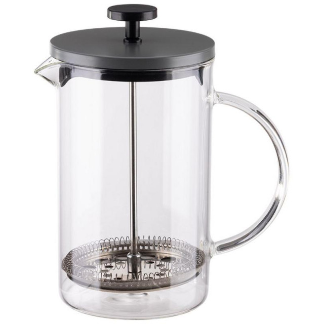 Френч-пресс Grigio, объём 800мл, со стеклянной ручкой/с окрашенной стальной крышкой, жаропрочное стекло, фильтр из нерж стали, пластмасса, нерж сталь 201. Коэффициент линейного расширения стекла: 3.3. Темп режим: - 20С до +150С