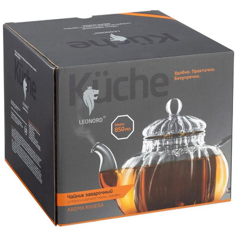 Чайник заварочный, AROMA RIVIERA, 850мл, из боросиликатного стекла с гранями, фильтр из боросиликатного стекла.