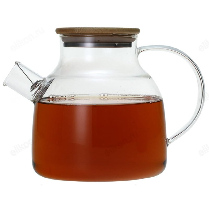 Заварочный чайник из боросиликатного стекла с крышкой из бамбука предназначен для использования в офисе или дома.